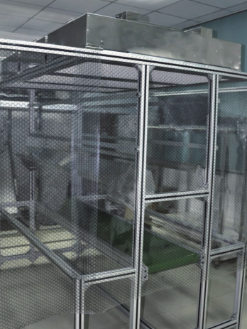 洁净棚是为方便、快速建立的一座简易洁净室,其具备多种洁净等级及空间搭配,可以根据使用需求设计制作;材料以工业铝材(不锈钢方通、喷塑方通)做框架,采用风机滤网机组FFU送风,四周采用防静电垂帘,顶部铺盖密封盲板,形成一个密封区,内部净化级别可达100^10万级,特别适用于车间内局部对洁净度要求高的区域,如流水线