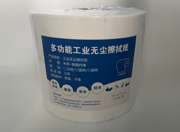 产品特点1、 原生木浆和聚丙烯纤维混合织造而成高性能擦拭大卷纸。2、 非常迅速其明显的吸收效果,不逊于棉布的强度和韧性。3、 不掉毛尘,防静电,干净卫生。应用场景1、 电子行业各类机器设备的擦拭清洁2、 制药行业生产设备的擦拭清洁3、 汽车制造行业各类生产设备的擦拭清洁4、 食品加工行业各类机器的擦拭清洁