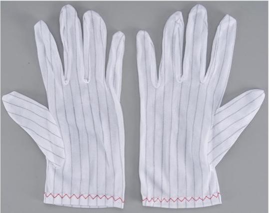 1.0条防静电手套是采用特种防静电绦纶布制作,基材由绦纶和导电纤维组成,导电纤维间距为10mm, 手套具有极好的弹性和防静电性能,避免人体产生的静电对产品造成破坏。